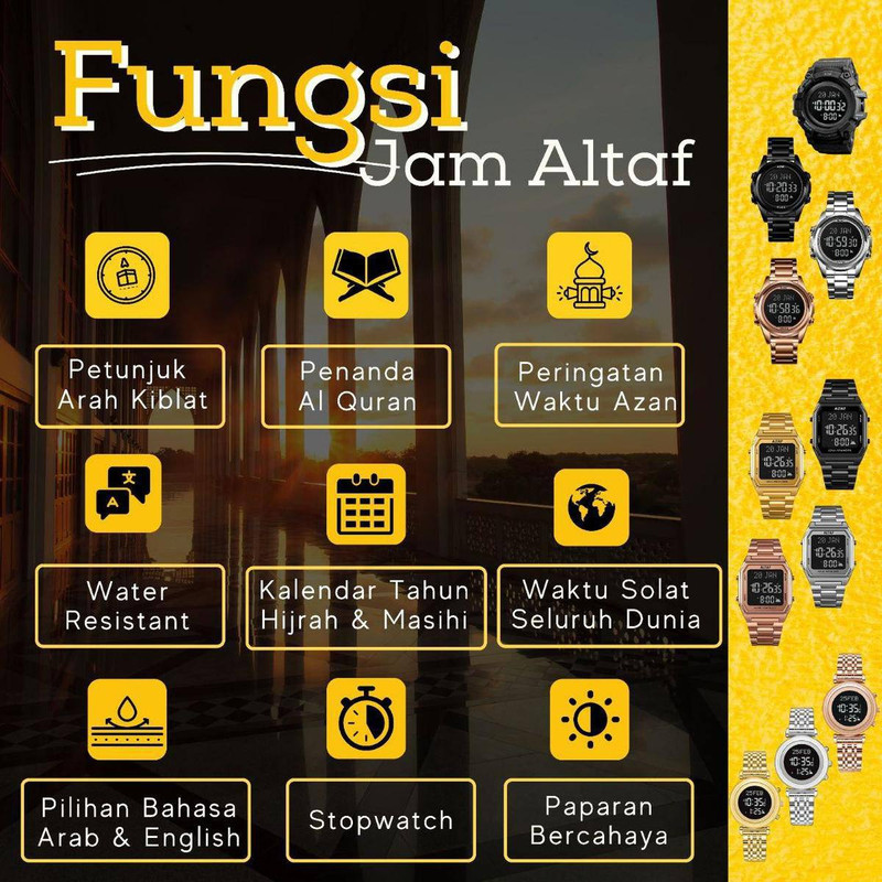 Berikut adalah fungsi-fungsi jam altaf yang akan menyempurnakan ibadah anda.
