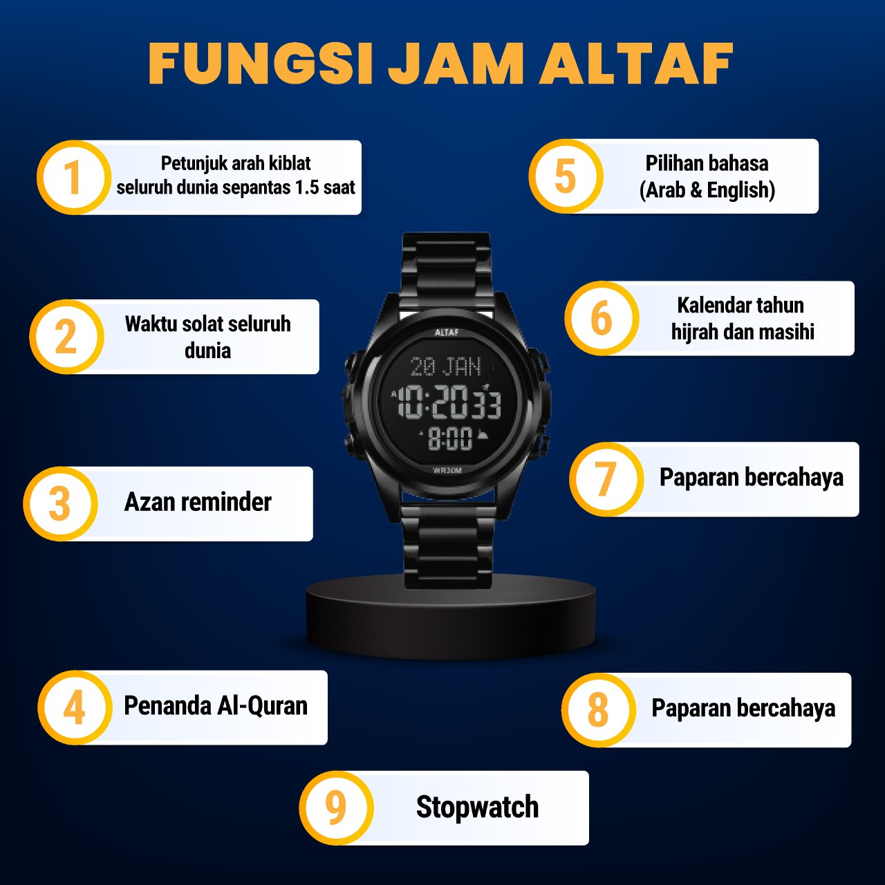 Jam ini memiliki fungsi yang luar biasa kerana ianya akan memberitahu anda arah kiblat dan waktu solat tepat pada masanya. Hebatkan ?