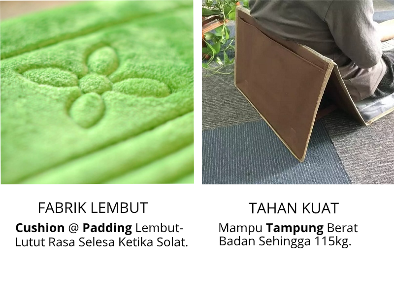 Sejadah Aya Sufia dengan multi-fungsi direka untuk keselesaan anda semasa solat dan semasa melakukan aktiviti keagamaan. Sejadah ini juga direka untuk mengurangkan masalah sakit lutut & tulang belakang!.