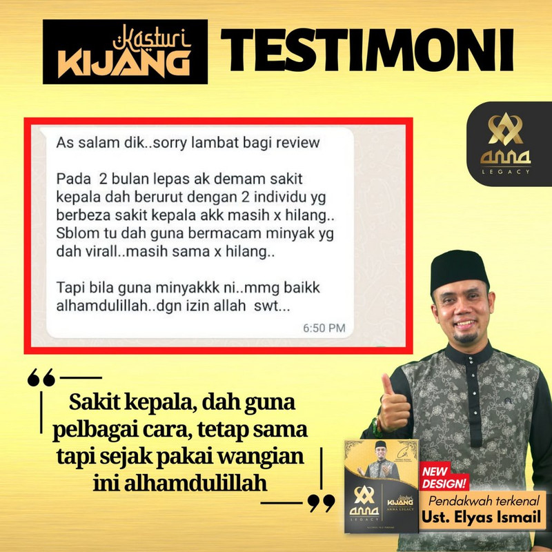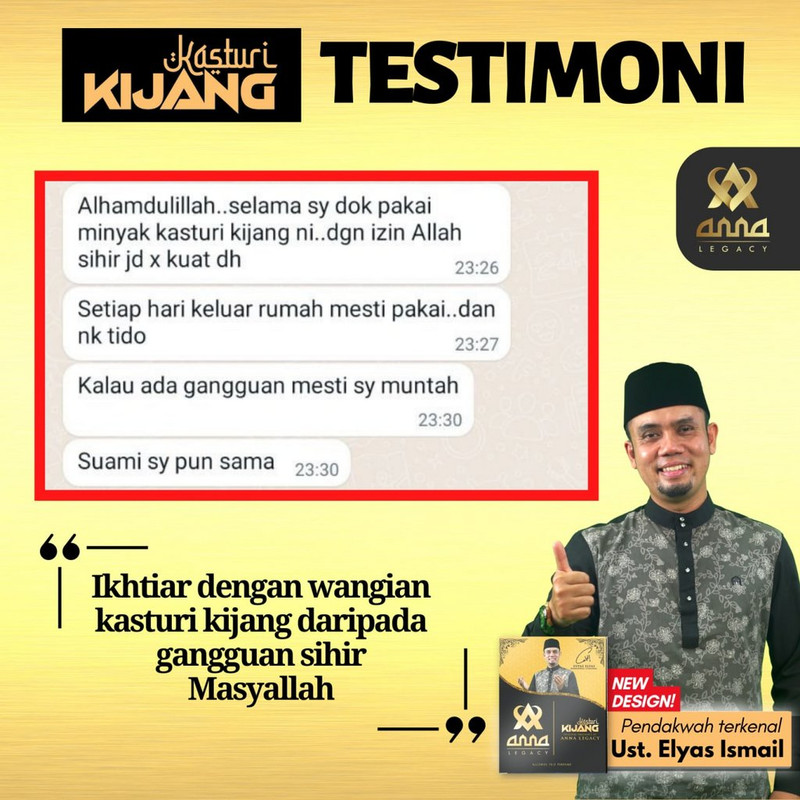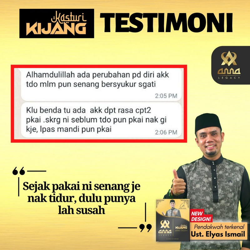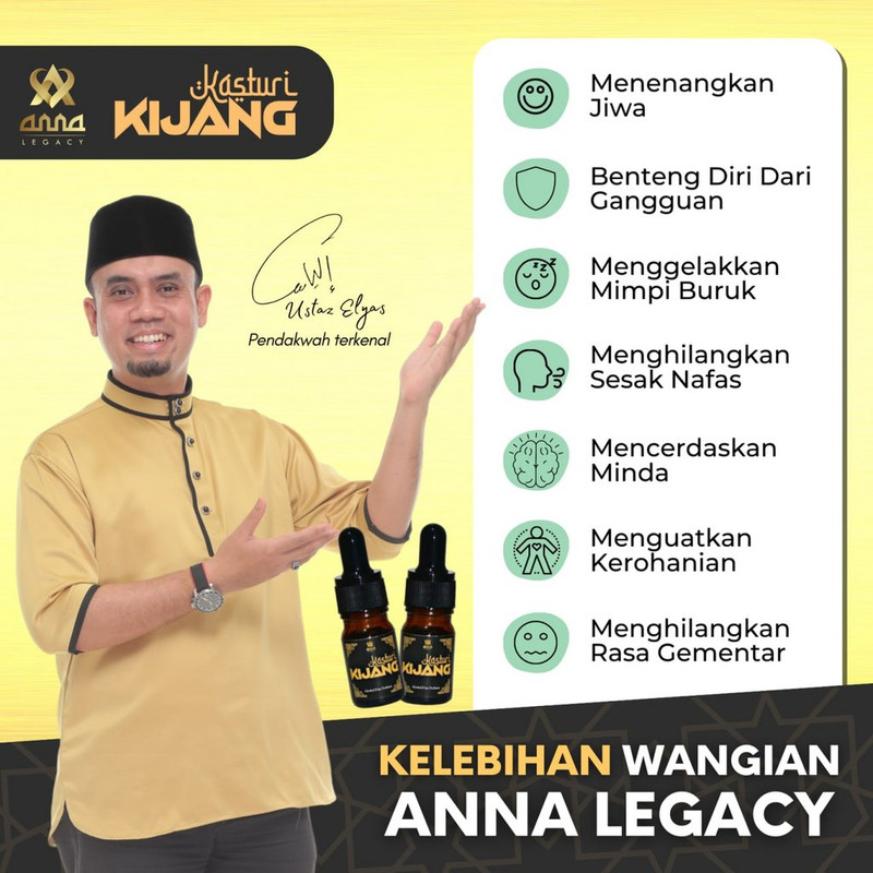 InsyaAllah, dengan mengamalkan Kasturi Kijang daripada Anna Legacy ini, anda mampu cegah masalah gangguan jin dan syaitan.